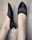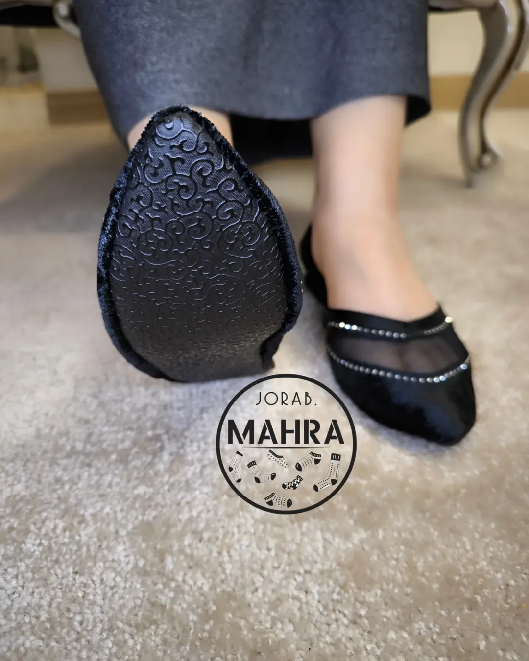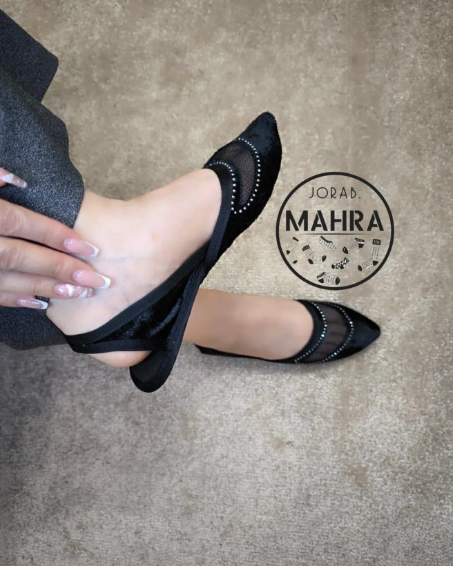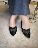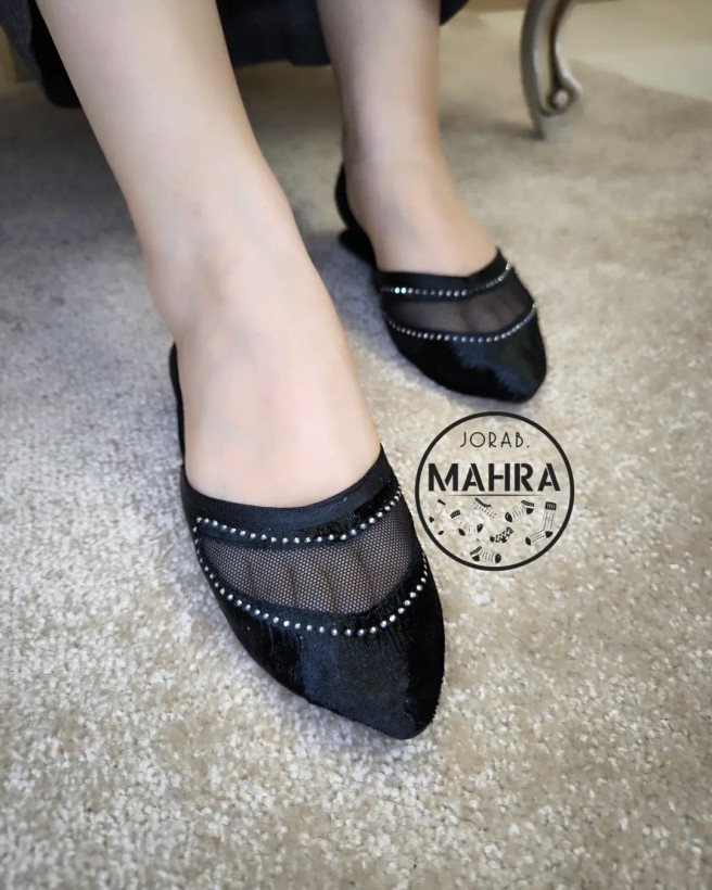پاپوش روفرشی مجلسی نوک تیز طرح لبخند نگین نقره ای سایزبندی ۳۷ تا ۴۱