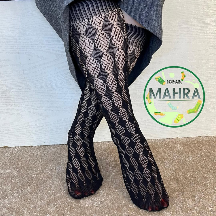 جوراب گیپوری ساق بلند با طرح لوزی فقط رنگ مشکی داره بالای زانو هستش