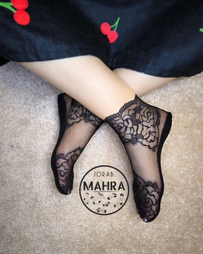 جوراب مجلسی لش گلدار دو رنگ مشکی و سفید